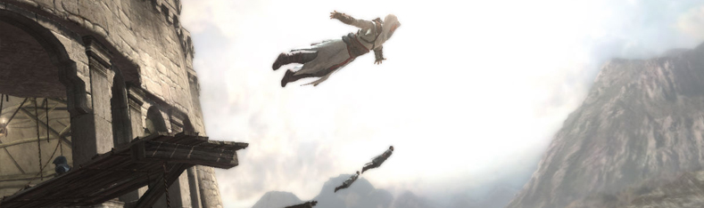 任何一个刺客,加入brotherhood时都要完成一个仪式。他们从城市最高的塔尖上俯瞰全城,然后向着塔底的草堆高高跃下。他们在跃下的那一刻伸展手臂,一种近乎疯狂的自由呼啸而来,将烦恼和恐惧抛诸脑后,你很容易联想到鹰的意象。我们总是可以将道理示于别人,却无法说服自己。这种仪式无疑是对自身的勇敢与自由最好的诠释,刺客们以这样的方式向城市宣告,他们的行为准则秉承信仰,允许他们在法律和道德中掌握邪恶者的生杀大权。他们称之为“信仰之跃”。